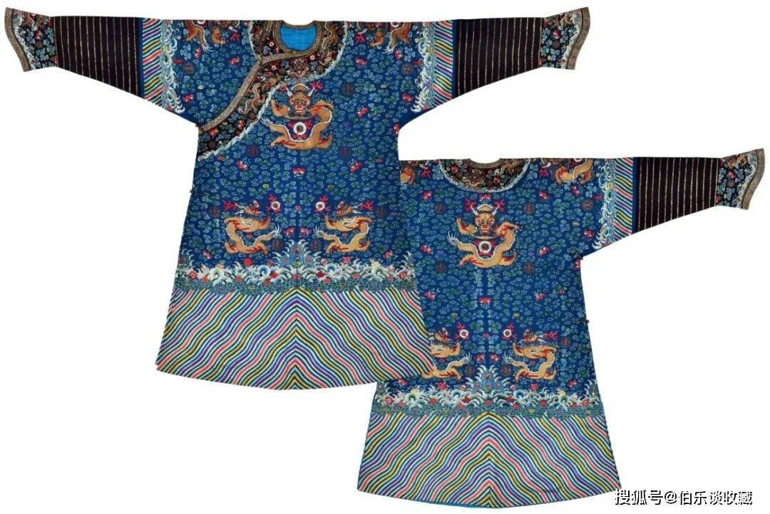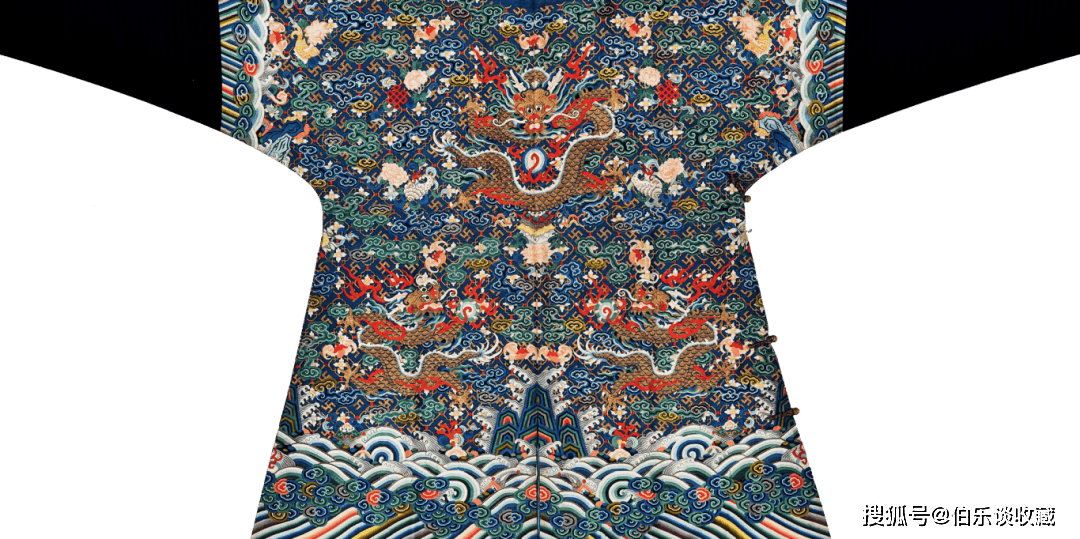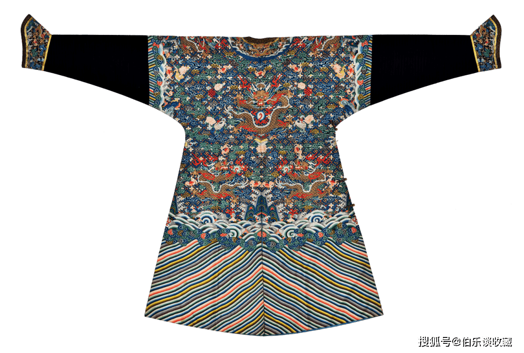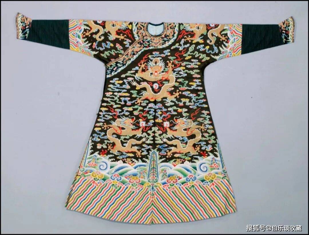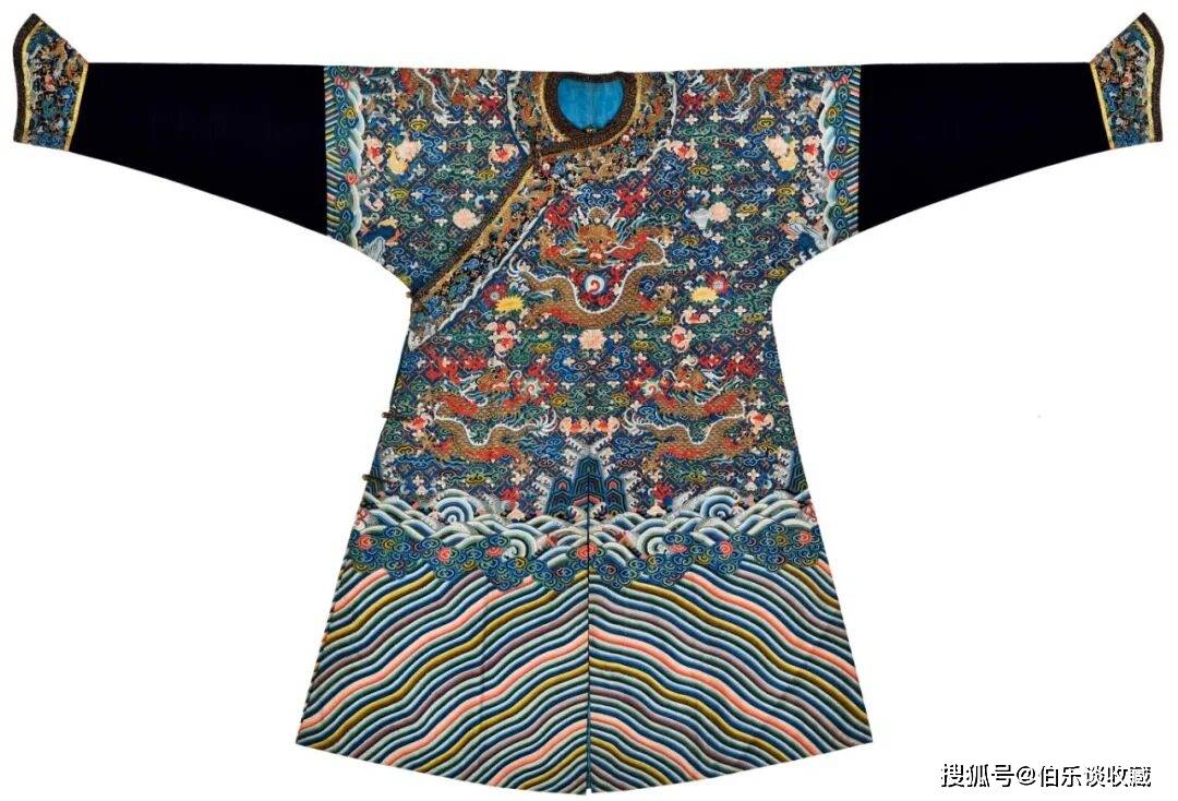 袍地通体以万字曲水纹起地,其形制被严酷钦定,仅皇帝得以全用,本品为清乾隆朝吉服袍,此类纹样正在绣法上常连系盘金、彩绣、套针、打籽等高工艺,(上方图片)详情征询 叶教员
