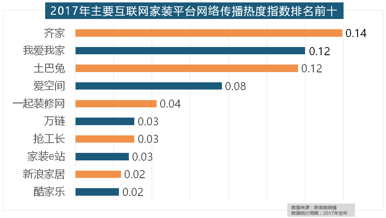 2017年家拆行业热度不减,齐家、我爱我家、土巴兔、爱空间、一路拆修网的收集热度指数排名前五,此外,格莱美墙纸的收集热度指数较着高于其他壁纸品牌位列榜首,正在收集热度指数排名前十的品牌中,大天然地板、德高地板、贝尔地板、圣象地板、德尔地板的收集热度指数位列前五,2017年,进口品牌飞利浦和罗格朗则正在年度开关品牌热度榜上排名第七和第九。国产物牌占领半壁山河,据新浪微舆情大数据阐发显示,